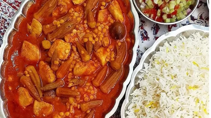 یک پرس خورشت، 2 تکه گوشت گوساله، 300 گرم برنج ایرانی